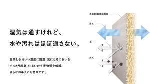 調湿効果 湿度を吸収し、乾燥時には湿気を放出。結露やカビの抑制に効果的