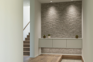 玄関にエコカラットプラスは、機能性・デザイン性ともに効果的な選択です。来客を迎える「顔」となる場所にふさわしく、空気も見た目も美しく整えることが出来ます。靴のニオイや湿った空気を吸着・軽減してくれます。