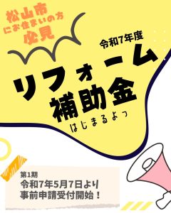 この度、令和7年度 松山市わが家のリフォーム応援事業(リフォーム補助金)の実施が発表されました。