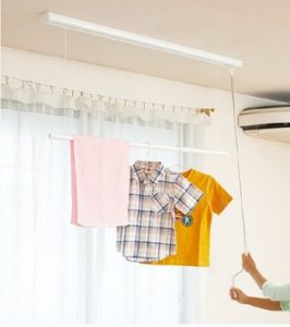 2:お部屋の天井から物干しを吊り下げることが出来る【室内物干しユニット】を設置する。