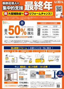 補助金でお得に!「先進的窓リノベ2025事業」が利用できます。