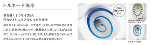 TOTOのトルネード洗浄は、渦を巻く水流で、便器の後方部まで洗浄してくれます。