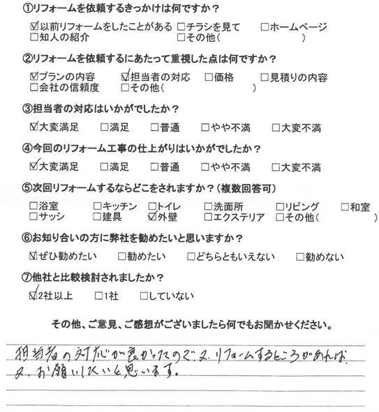 担当者の対応が良かったので、又、リフォームするところがあれば