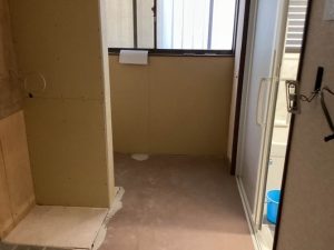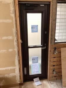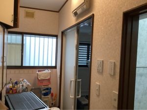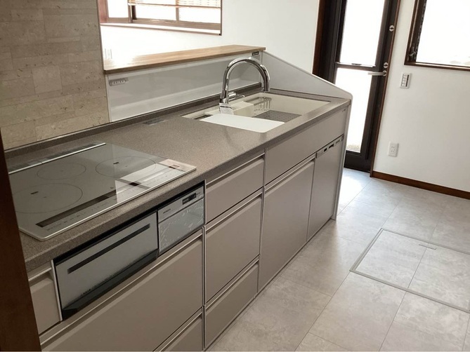 勝手口自体も取替えることによりフラットな床面に仕上げることが出来、対面式キッチンを実現しました。