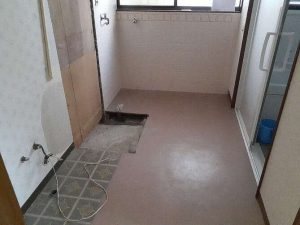 ・壁付けL型キッチンから対面式キッチンにリフォームする際に、勝手口の土間部分の段差を解消するために